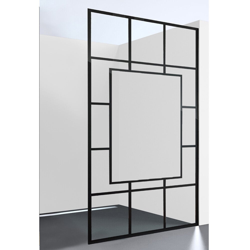 Categorie: zwarte douchewand, zwarte douche, glaswand met zwarte omlijsting, inloopdouche met zwart frame, inloopdouche mat zwart, inloopdouche zwart, inloopdouche industrieël, industriële douchewand.
