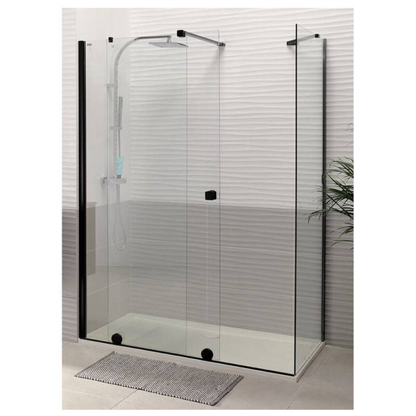 Categorie: douchecabine,zwarte douchecabine,schuif douchedeur zwart, clean douchewand, douchecabine, glazen schuifwand, anti-kalk douche, glazen douchewand douchescherm, schuifdeur met wand, grote douchecabine zwart.