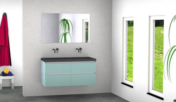 Badmeubel set Vision fjord groen 120 cm met 4 laden en natuursteen blad