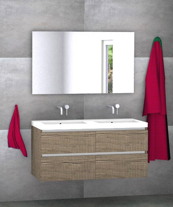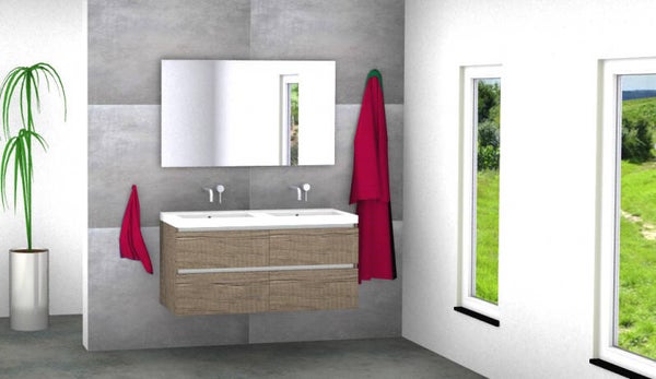 Badmeubel set Vision nebraska eik 120 cm met 4 laden en kera jazz blad