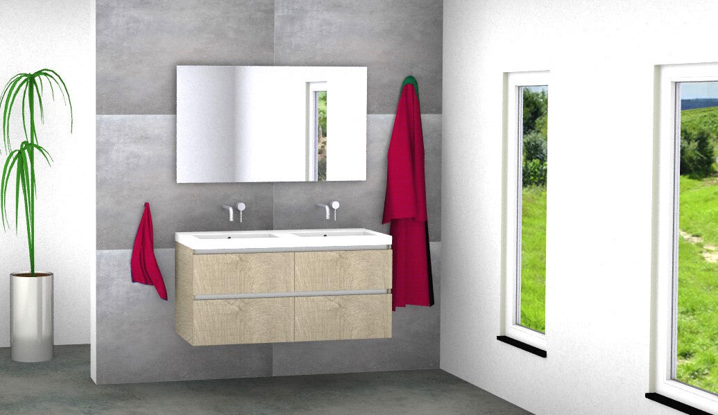 Badmeubel set Vision stone oak 120 cm met 4 laden en kera jazz blad