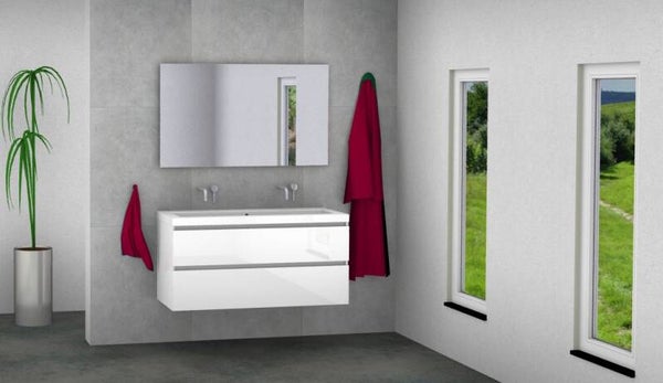 Vision 120 cm greeploos badmeubel kleur glans of mat wit met keramisch jazz blad en standaard spiegel (kraan niet inbegrepen).