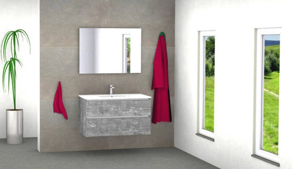 Vision 100 cm greeploos badmeubel kleur cemento met keramisch blad 1,5 cm en standaard spiegel (kraan niet inbegrepen).