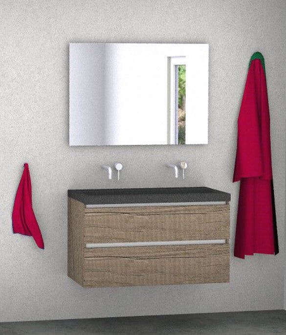 Badmeubel set Vision nebraska eik 100 cm met natuursteen blad