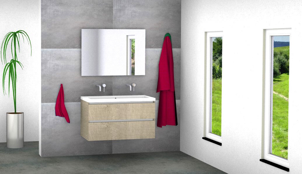 Badmeubel set Vision stone oak 100 cm met kera jazz blad