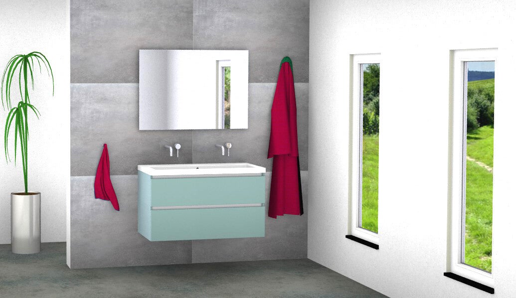 Vision 100 cm greeploos badmeubel kleur fjord groen met keramisch jazz blad en standaard spiegel (kraan niet inbegrepen).