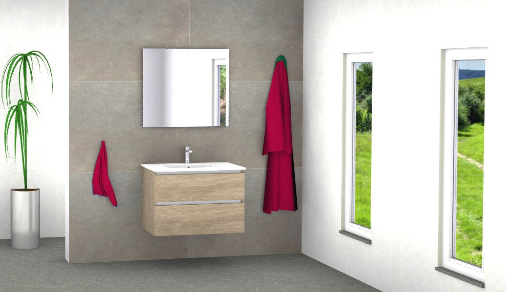 Badmeubel set Vision bardolino eik 80 cm met dun kera blad