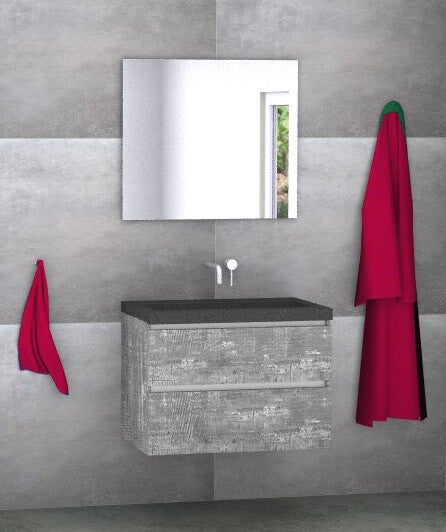Vision 80 cm greeploos badmeubel kleur cemento met natuursteen blad ca. 5 cm en standaard spiegel (kraan niet inbegrepen).
