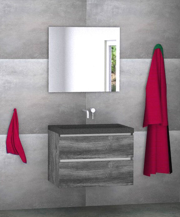 Vision 80 cm greeploos badmeubel kleur jackson pine met natuursteen blad ca. 5 cm en standaard spiegel (kraan niet inbegrepen).