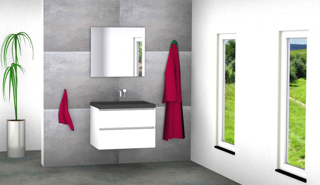 Categorie: badmeubel, badmeubel set, badkamermeubel, natuursteen wastafel, hardsteen blad, greeploos meubel, hangend badmeubel