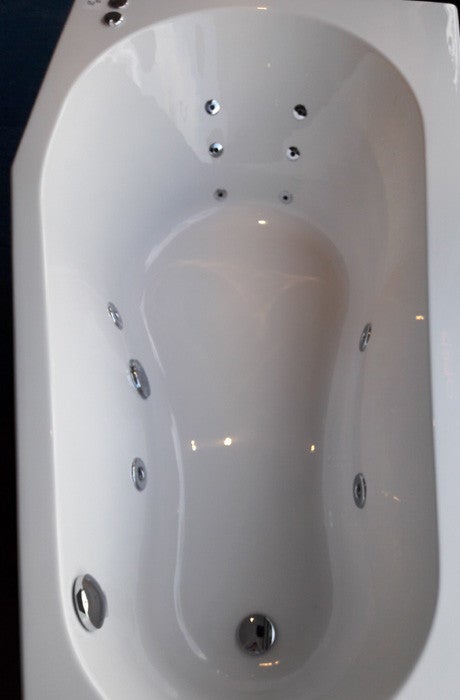 Showroom bad Sealskin ruimte besparend wit 160x90 cm met whirlpool 4 zijjets en 6 mini rugjets.