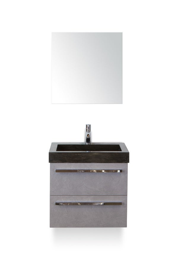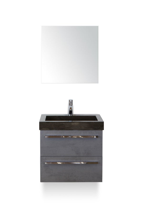 Amanda badmeubel 60 cm leverbaar in 5 moderne kleuren gecombineerd met een natuursteen wastafelblad en spiegelkast dubbelzijdig gespiegeld (kraan niet inbegrepen).